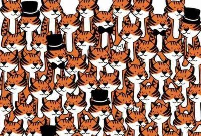 Los een leuke, maar zeer uitdagende puzzel op – je moet proberen vier katten tegelijk te vinden tussen de vele rode en witte katten met zwarte hoeden.