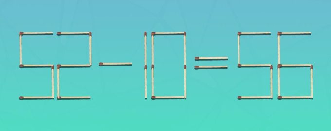 Laten we het samen uitzoeken. Je kunt het cijfer 10 veranderen door 0 te vervangen door 6. Op dezelfde manier kun je één lucifer in het cijfer 56 verplaatsen door 5 en 3 vast te zetten. Dan krijg je de gelijkheid 52-16=36. Dat is wiskundig correct.