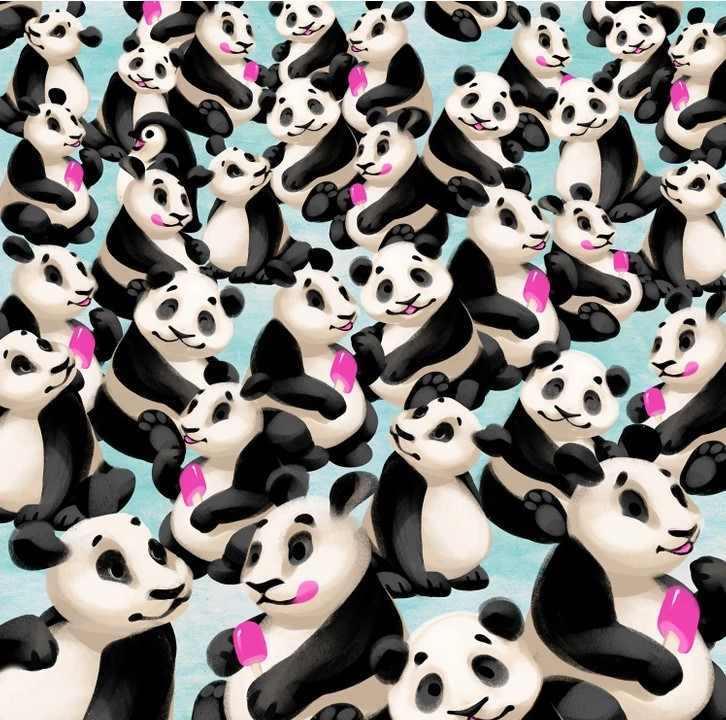 Kon je de pinguïn niet vinden? De hint staat in de linkerhoek van de foto. Verstopt tussen de panda’s.