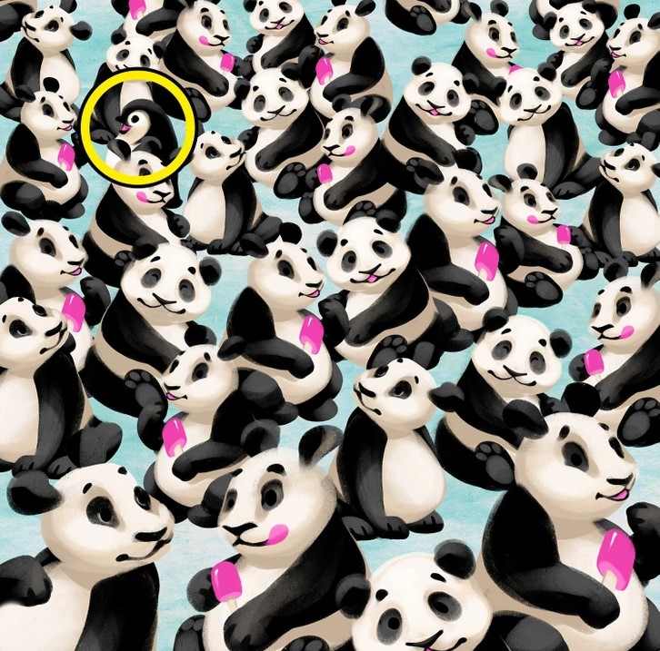 Als je je dag in dag uit verveelt en je werkroutine je alle enthousiasme ontneemt, probeer dan puzzels op te lossen. Leuke optische illusies zorgen voor een glimlach en trainen je aandacht. Deze keer moeten we de pinguïn tussen de panda’s zien te vinden.